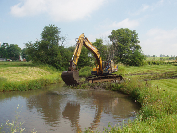 Every one or two years the catchment pond at the north end of the lake is dredged to remove silt which would otherwise wash into the lake. This work is performed with a long reach back-hoe.